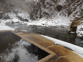 今日は 川岸露天風呂の周囲が きれいに湯化粧しています。