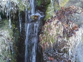 今朝は冷え込んで、玄関前の滝は、数日ぶりにツララが出来ました。